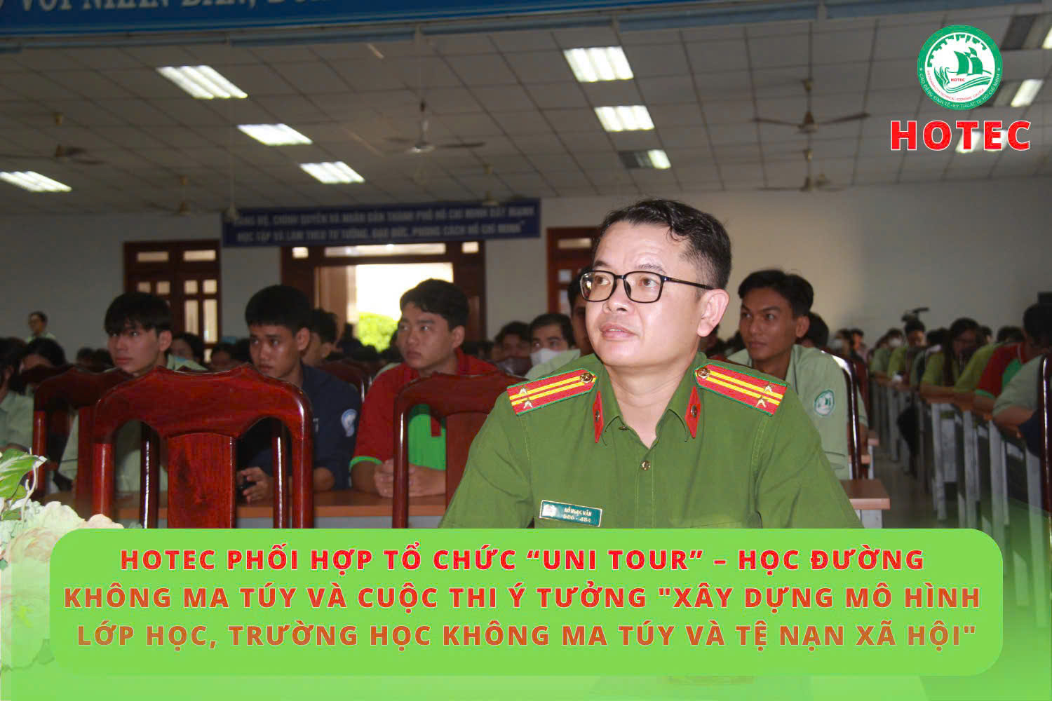 Sáng ngày 12/5/2025, Hội Sinh viên Việt Nam Trường Cao đẳng Kinh tế – Kỹ thuật Thành phố Hồ Chí Minh vinh dự đăng cai tổ chức chương trình “Uni Tour” – Học đường không ma túy. Đây là hoạt động do Hội Sinh viên Việt Nam Thành phố và Ban Giám đốc Công an Thành phố tổ chức triển khai tại các trường Đại học, Học viện, Cao đẳng trên địa bàn Thành phố, nhằm nâng cao chất lượng công tác giáo dục, tuyên truyền về phòng, chống ma túy và thuốc lá điện tử trong học đường. Chương trình đã thu hút sự tham dự của hơn 400 bạn học sinh, sinh viên HOTEC, để lại nhiều dấu ấn sâu sắc với chuỗi hoạt động ý nghĩa, thiết thực.