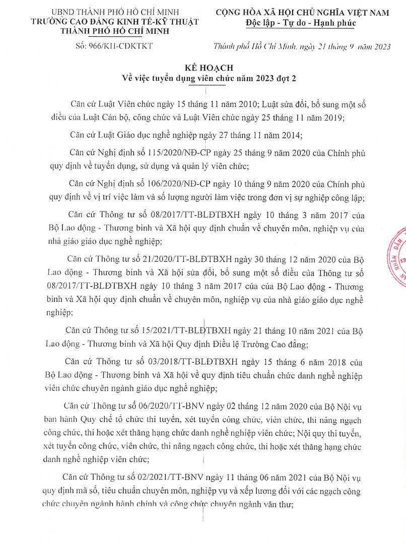Kế hoạch về việc tuyển dụng viên chức năm 2023 đợt 2 – KH 966
