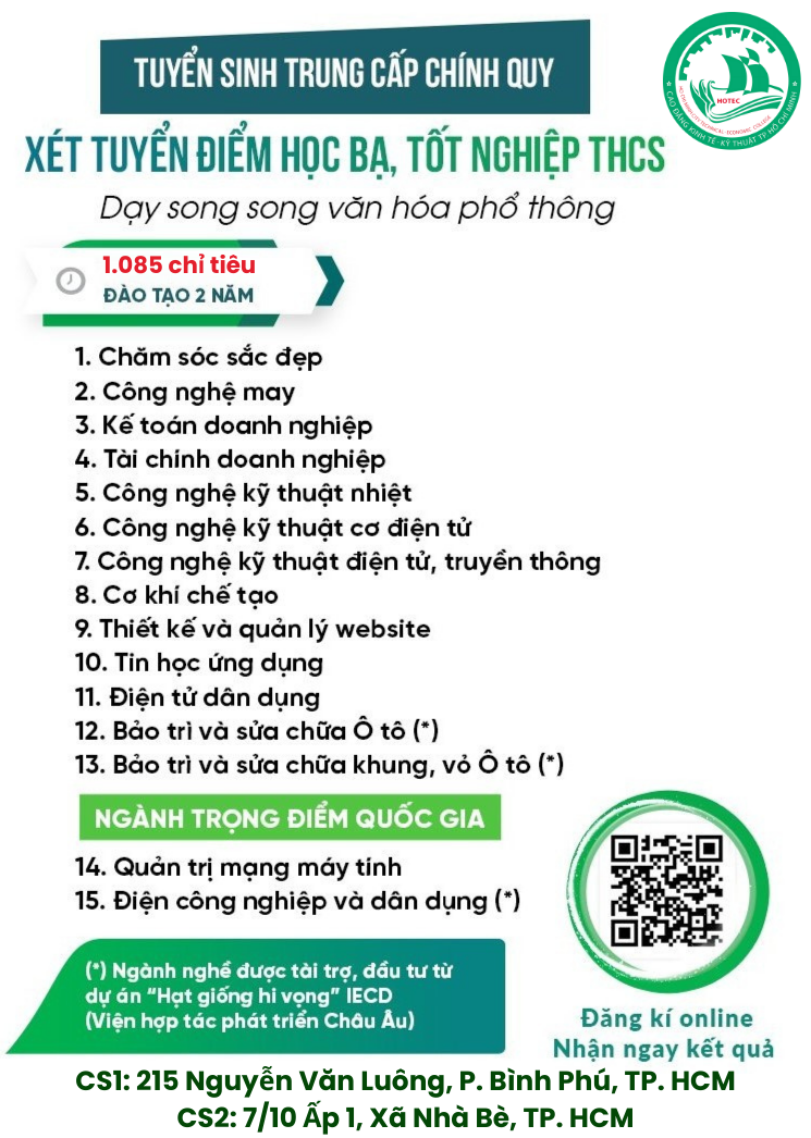 (Xét tuyển Học bạ, tốt nghiệp THCS hoặc tương đương)